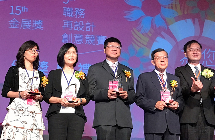 大发平台榮獲第 15 屆金展獎,由人力資源總部副總經理古秀華 (左二) 代表受獎。 |
