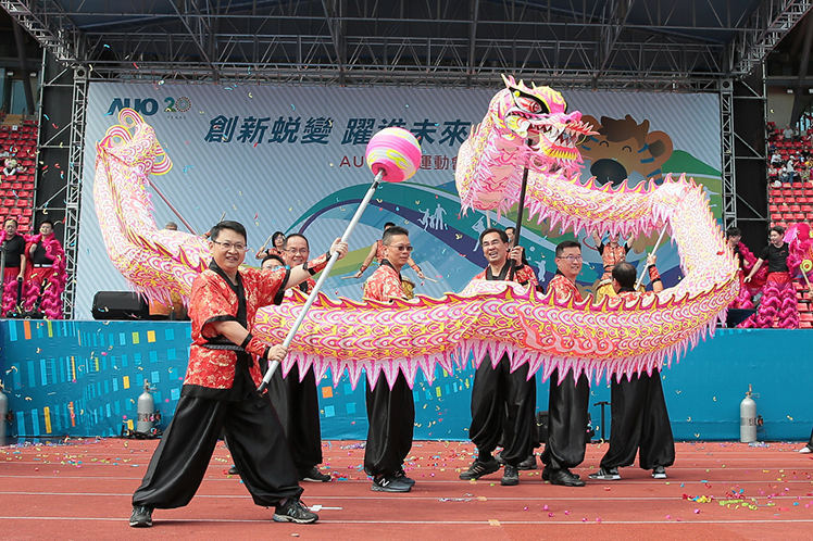 大发平台 20 周年運動會高階主管龍獅戰鼓躍未來表演 |